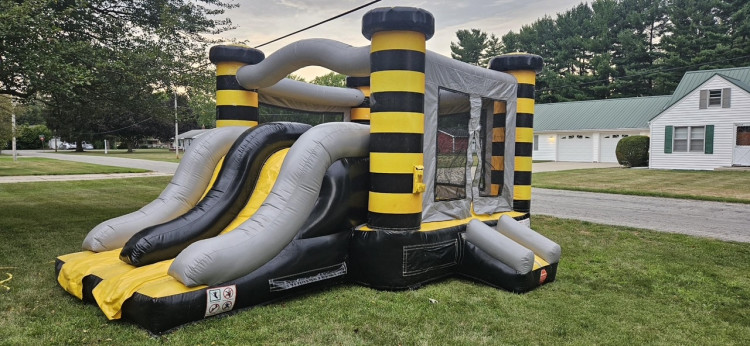 - OCCUPANCY: A maximum of 5-6 kids of equal size at one time for bounce houses, and 1 person at a time for slides is what most inflatable manufacturers recommend.