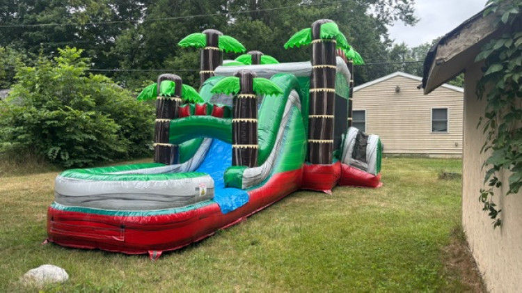 This vibrant combo inflatable blends a roomy bounce area with an attached slide and climbing zone, all finished in a striking red marble pattern that adds flair to any event. Designed for active play, it gives kids a safe, contained space to jump, tumble, climb up the built-in ladder, and glide down the slide—perfect for birthdays, school functions, or backyard parties. Mesh sides provide airflow and visibility so watchers can easily supervise, while the reinforced entrance helps keep the play area secure. Durable, easy to set up, and visually eye-catching, the Red Marble Combo Unit delivers classic bounce-house fun with added variety and excitement.