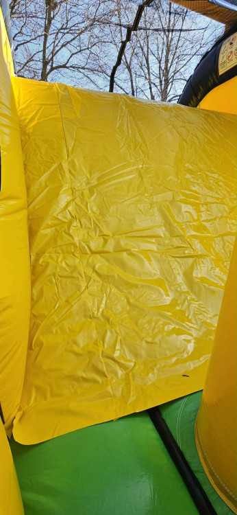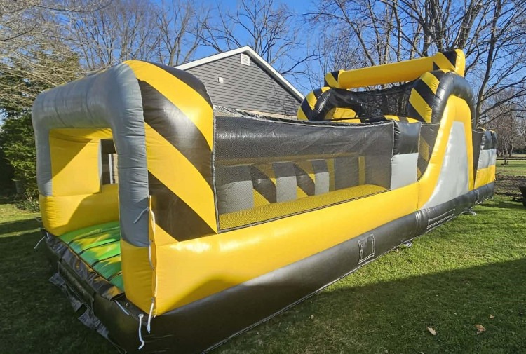 Tackle a thrilling 30-foot challenge with this Venom Obstacle Course — a compact yet action-packed inflatable designed for fast-paced fun. Bold yellow, black, and gray colors give it a high-energy look, while safety mesh side panels keep participants visible and airflow steady. The course features a sequence of inflatable obstacles: upright pillars to weave through, tunnels and archways to crawl under, rolling barriers to push past, and a short climb-and-slide section that ends with a soft landing. Its narrow footprint makes it ideal for backyard parties, school events, or community gatherings where space is limited but excitement is required. Durable vinyl construction, bright graphics, and multiple entry/exit points help keep traffic moving so groups can race or run relay-style. The 30 Foot Venom offers heart-pounding fun for older kids and teens while providing the dependable safety and performance you expect from a rental-grade obstacle course.